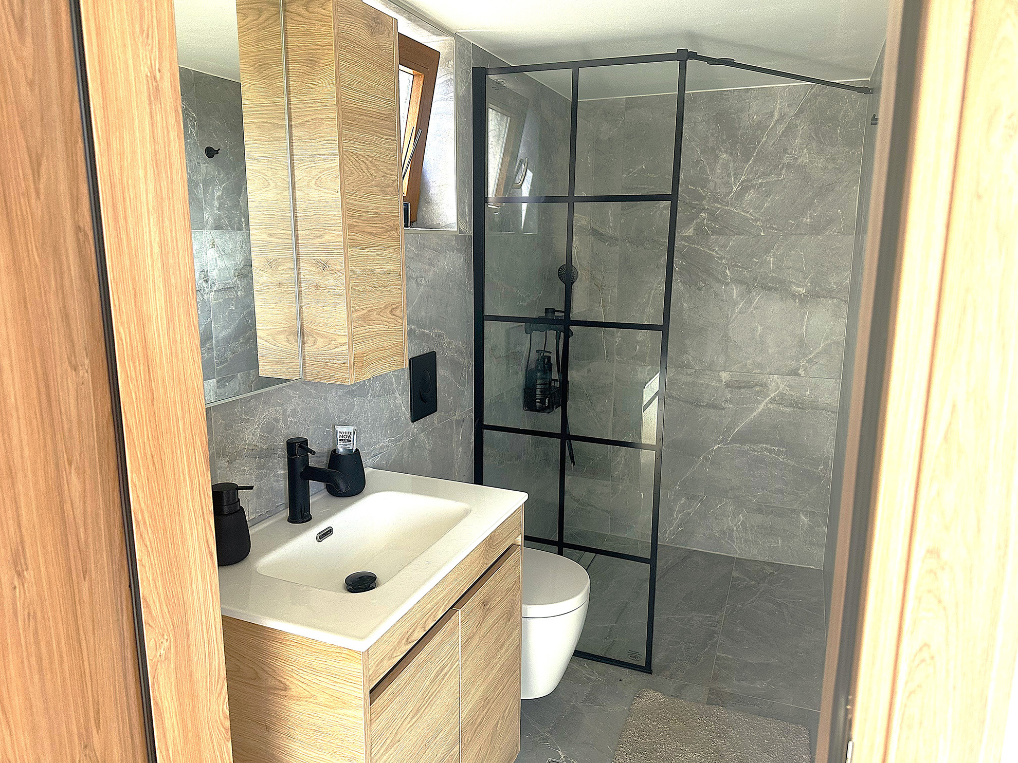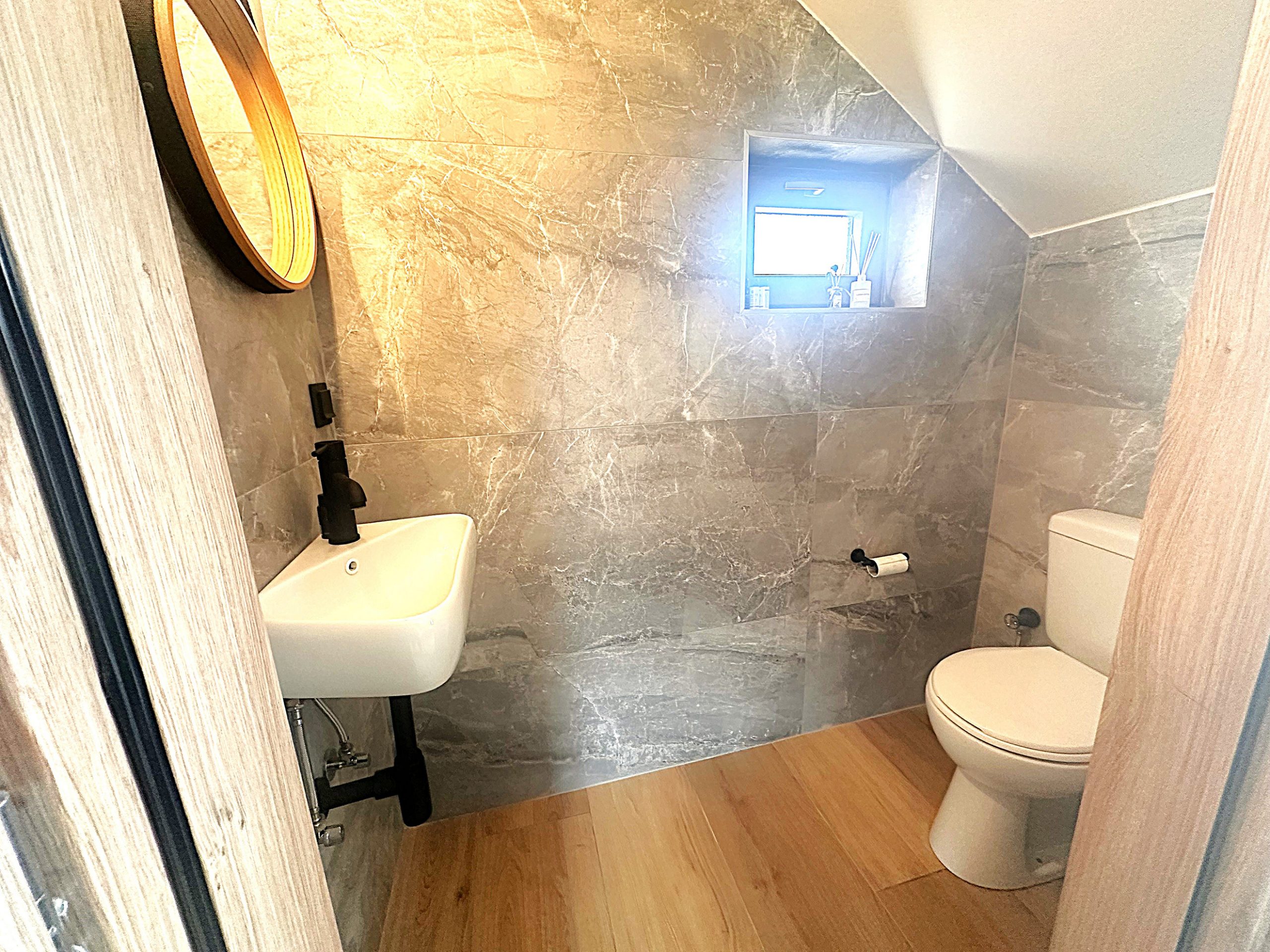 - Bathroom with toilet and washbasin